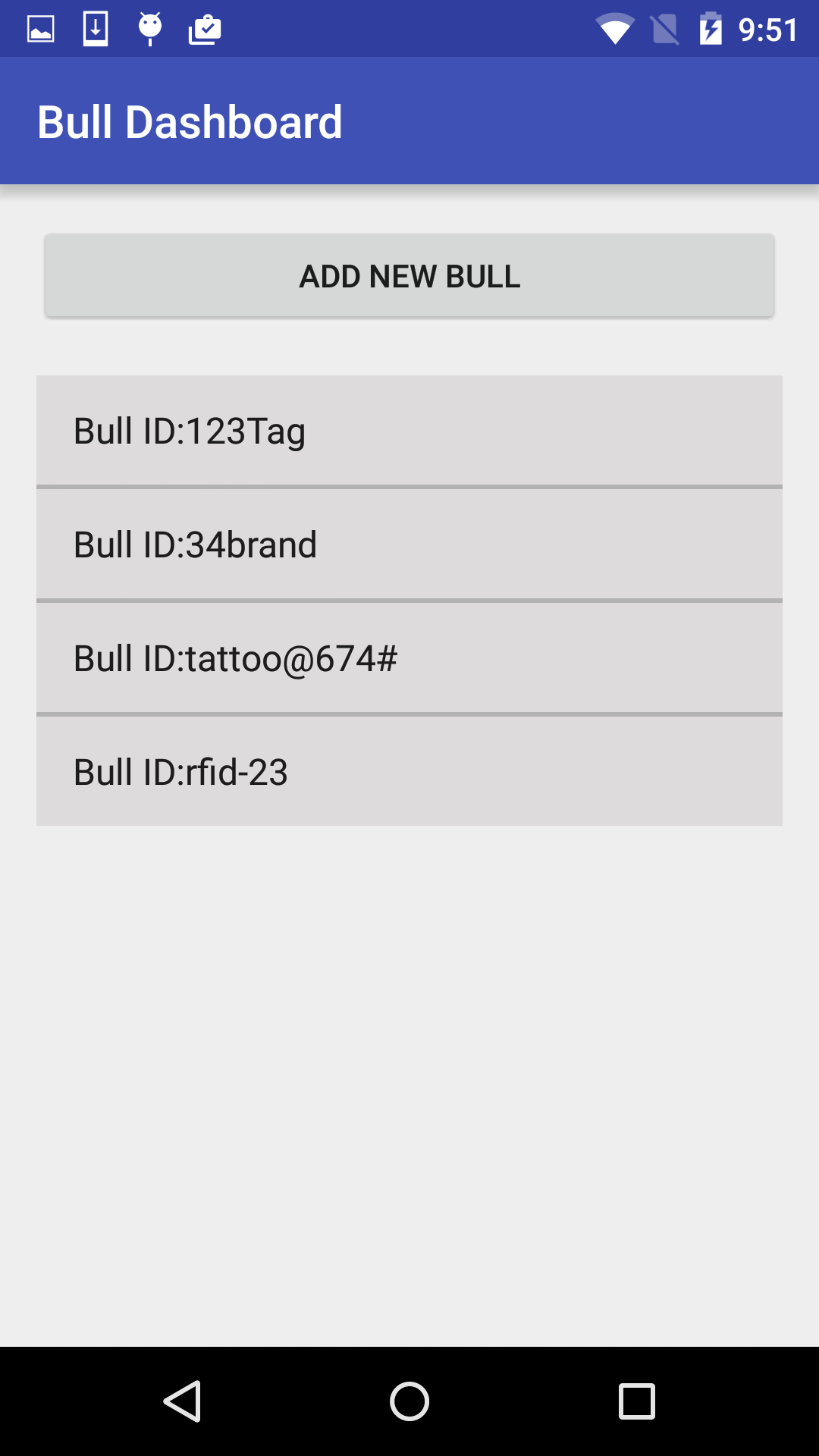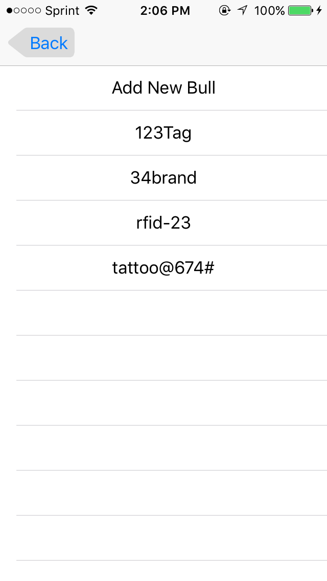 This screen allows you to view and edit data about bulls. The data about a specific bull can be viewed and edited by clicking on the corresponding Bull ID button. A new entry for a bull can be added to the group by clicking on Add New Bull button.