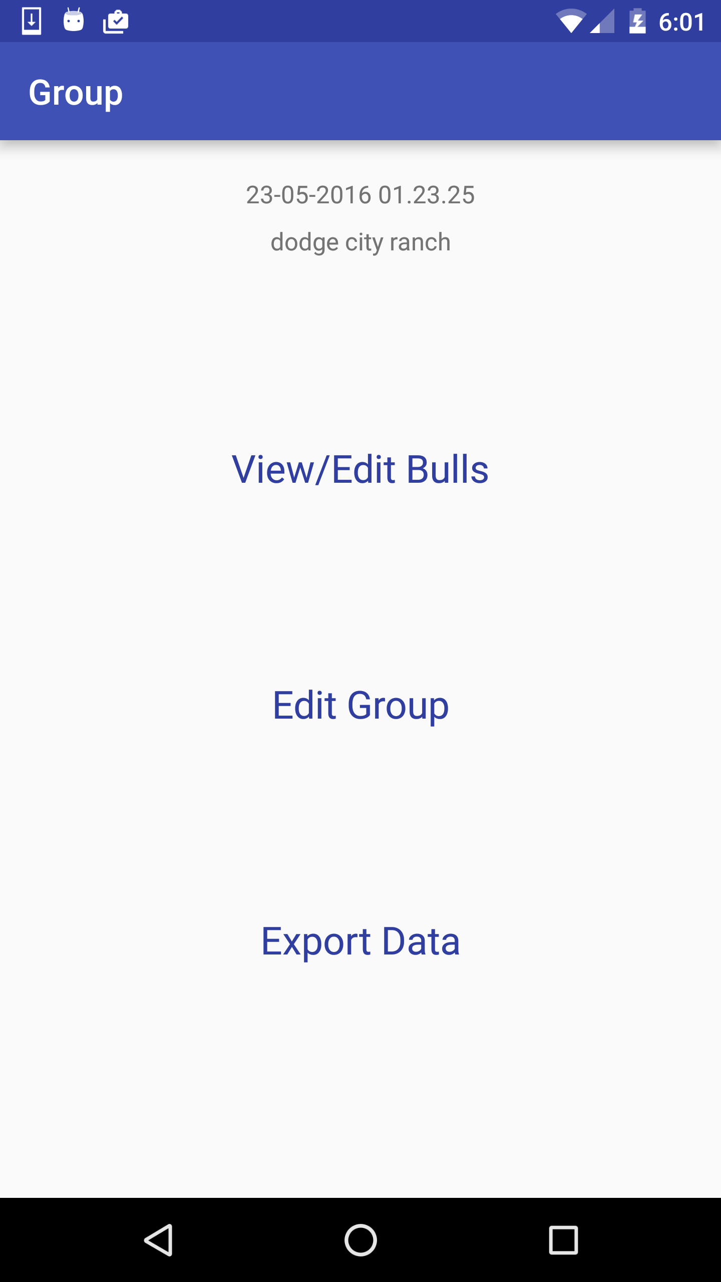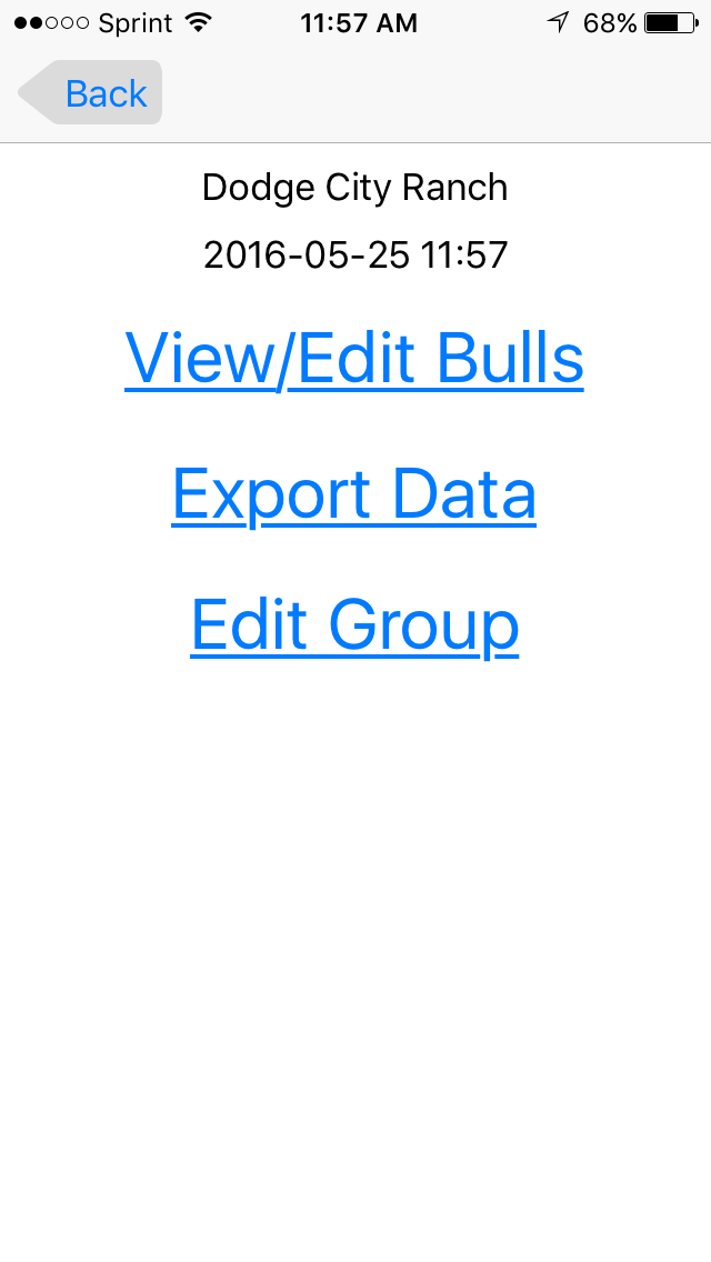 This screen allows you to view and edit data for bulls in the current group (by clicking View/Edit Bulls). It also allows you to export the data for the current group of bulls (by clicking Export Data).