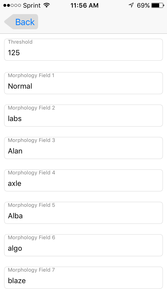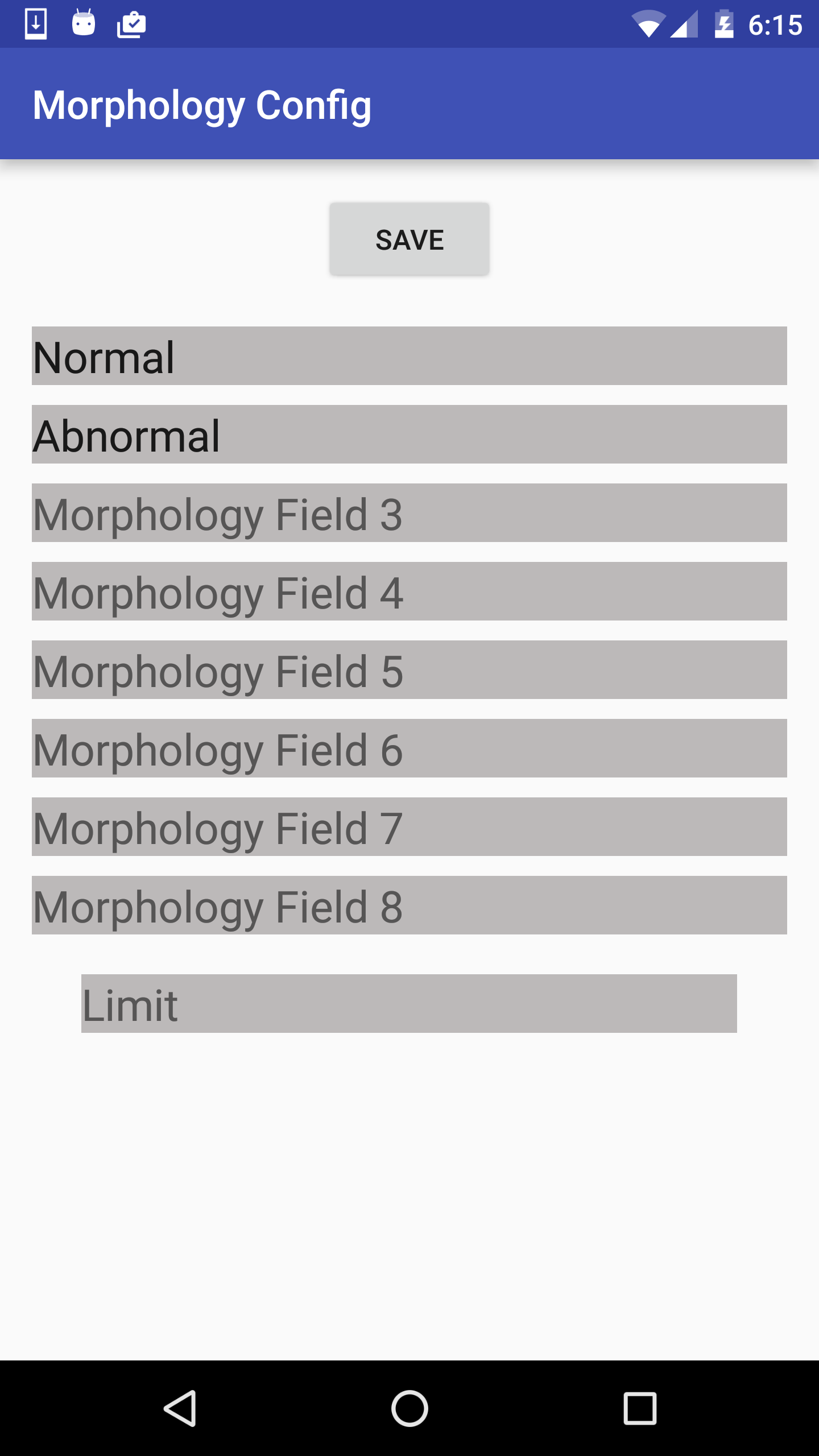 Before proceeding to collecting data, morphology fields will also have to be configured. This information will allow you to use the in-application counter to assist in collecting count data about bull semen samples. By default, the first field is labelled as Normal and the users cannot reconfigure this field.
