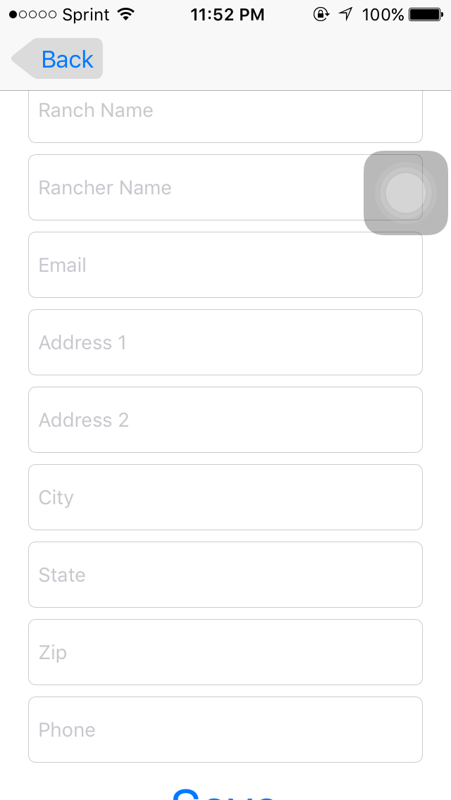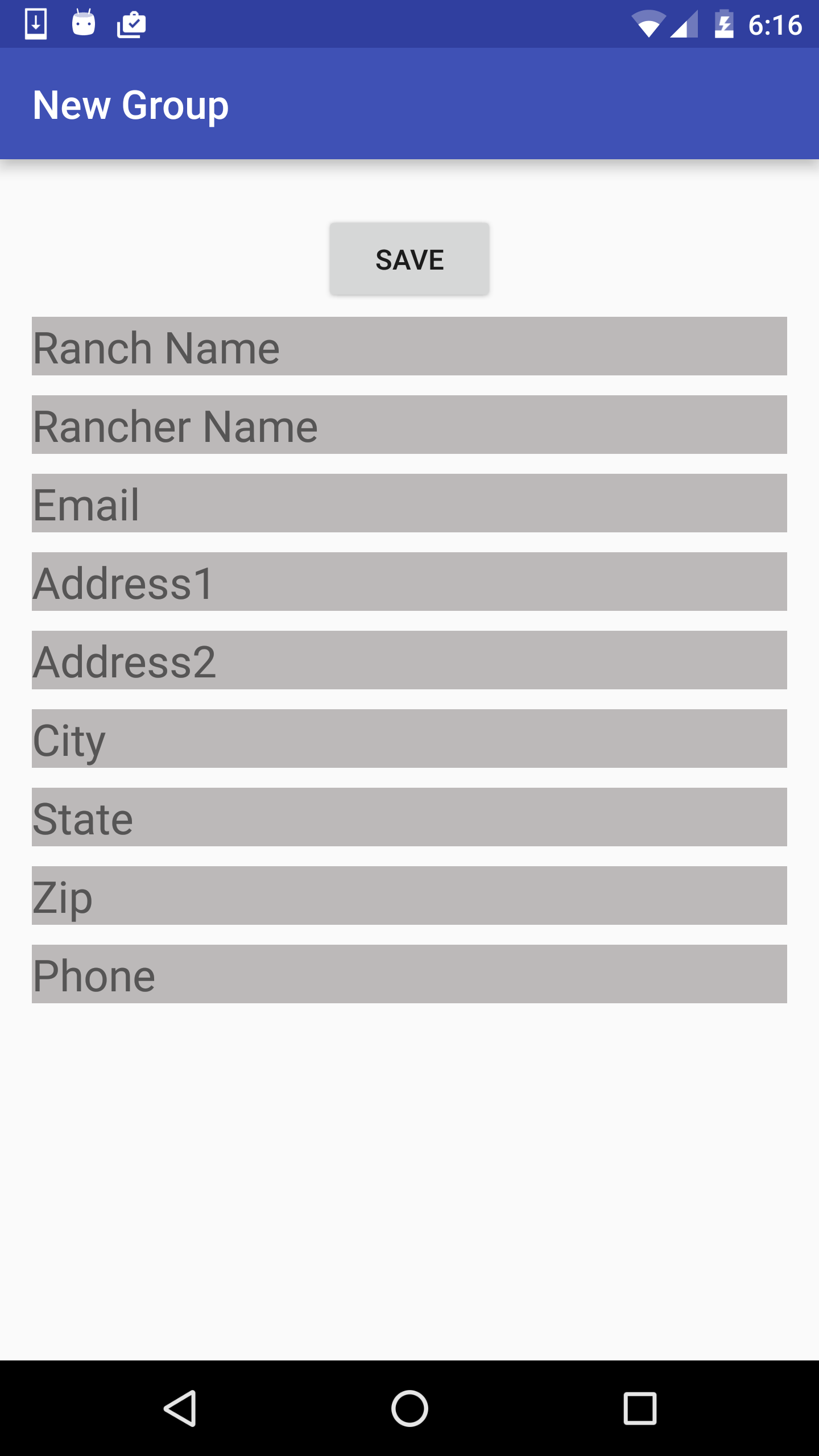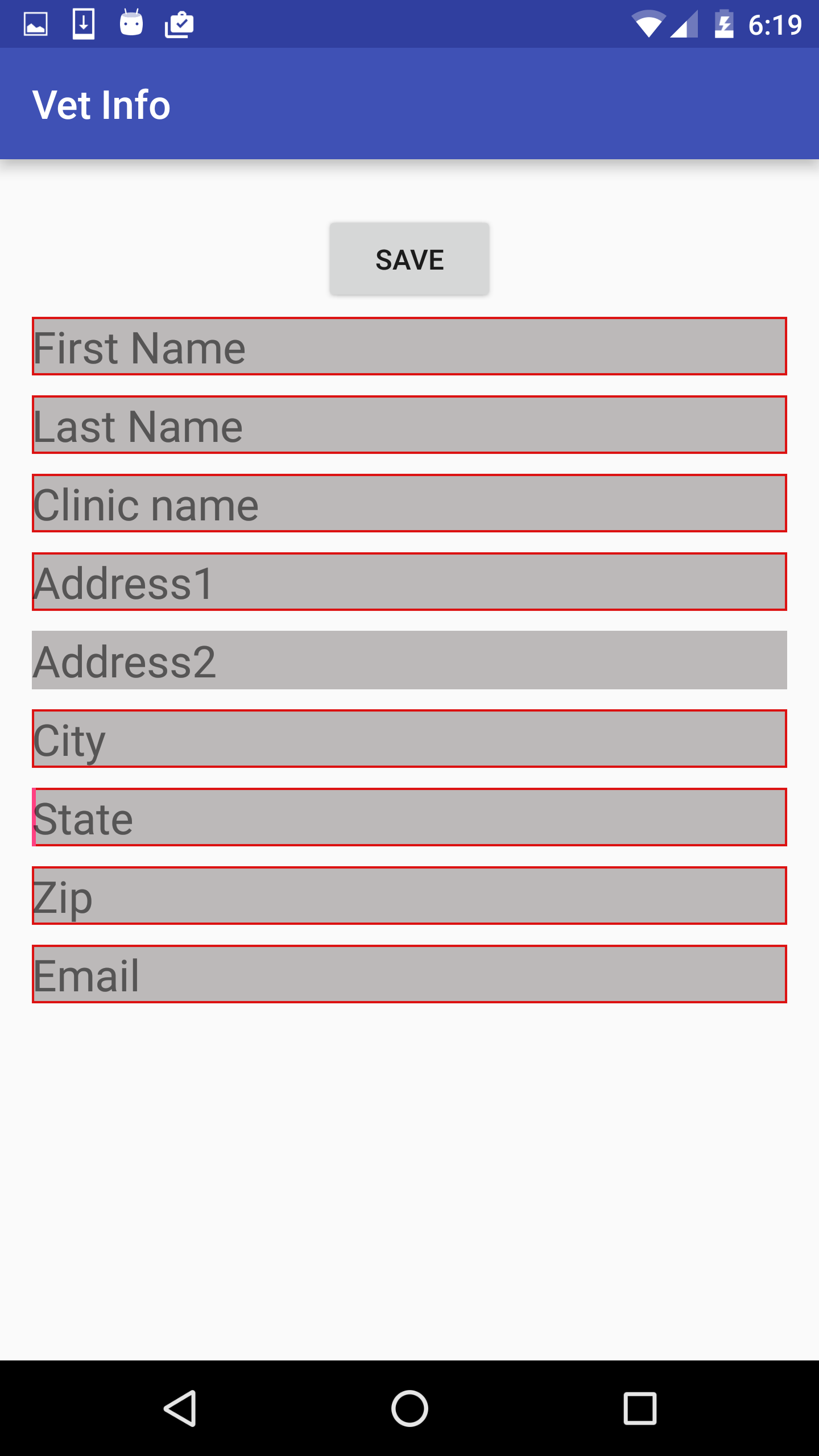 In this screen, each field is associated with a hint that suggests the type of information accepted by the field. Remember to click the Save button before you navigate away from the screen. If you enter invalid information, the app will notify you by highlighting corresponding fields in red.