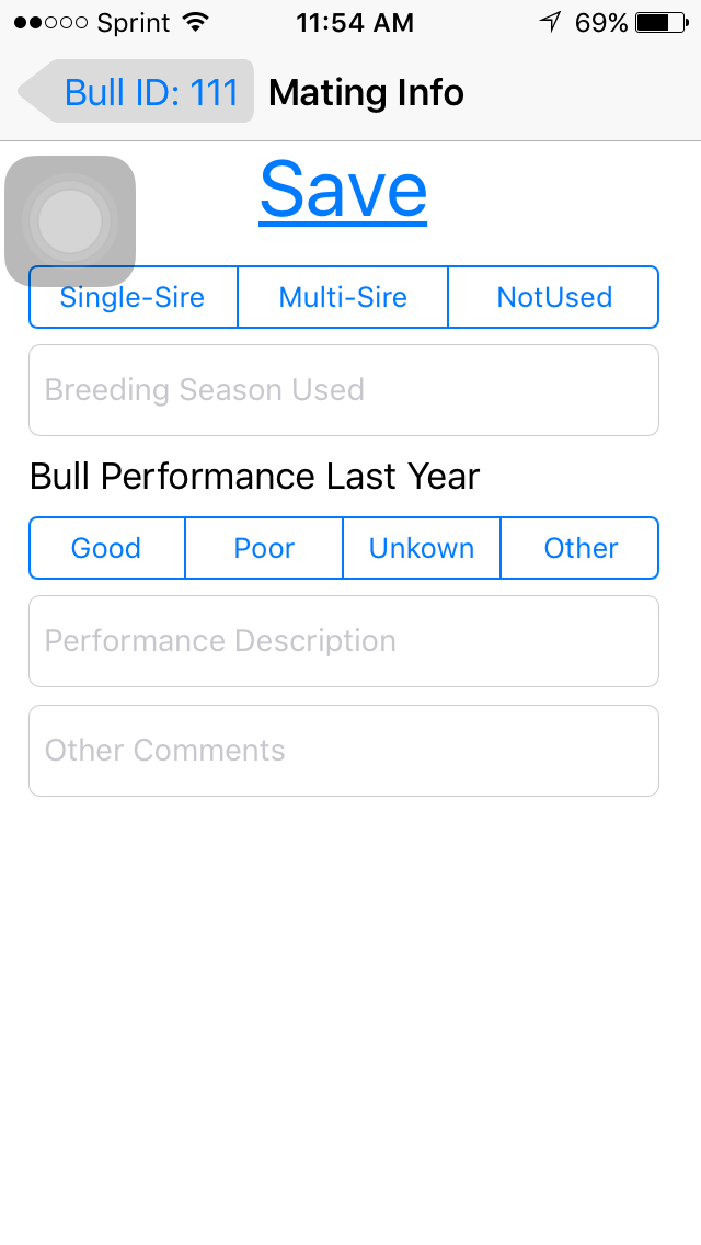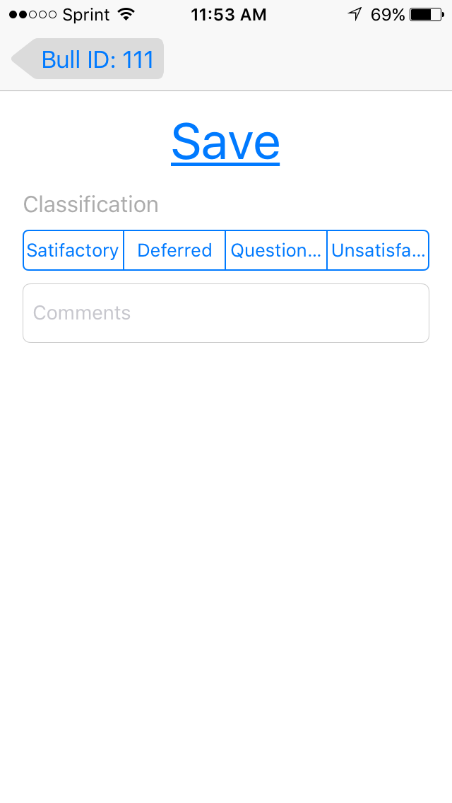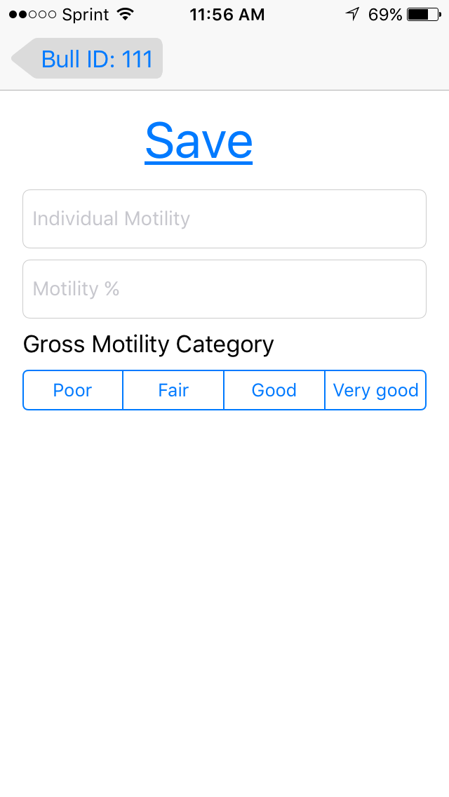 If you chose to create a new group by clicking Add New Group, then you will be prompted to input data about the owner of the set of bulls to be examined in this group. Once you click Save, the data will be saved and you will be able to collect data about bulls.